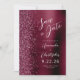 This elegant modern wedding save the date card features a burgundy brushed metal background decorated with faux diamond glitter. The customisable text combines white script and sans serif fonts. The reverse side repeats the burgundy brushed metal and glitter design.