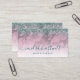 This elegant modern business card features a background image of burgundy marble, framed on the top by a teal blue faux glitter border. Personalise it with your name in teal handwriting-style script and your business information in sans serif font. A white gradient screen helps make the text pop. The reverse features teal text on a matching burgundy and teal design. Ideal for hair stylists, makeup artists and aestheticians.