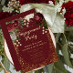 Elegant and classy dark red and burgundy floral roses with seed pearls on a splatter frame "Engagement Party" design by Holiday Hearts Designs. All text is real gold foil and the splatter frame is a combination of gold foil and gold-toned gradient. Seed pearls are faux printed. Background is burgundy on front and back.