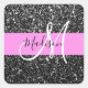 Glam Chic Pink Black Glitter Sparkle Name Monogram Square Sticker