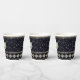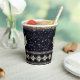 A Nordic-inspired holiday pattern featuring green and metallic trees and snowflakes on a dark background. Folk motifs and subtle shimmer add festive flair to your party drinkware.