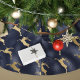 Glam Christmas Reindeer Navy Blue Gold Faux Foil Brushed Polyester Tree Skirt