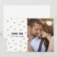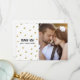 A chic, modern wedding thank you photo card with swanky faux gold foil confetti, hand lettering and calligraphy, and an elegant white background. Additional photos and text can be added to the back of the card if desired.