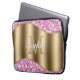 Glam Diamonds Fuchsia, Gold Monogram, Script Name Laptop Sleeve