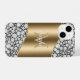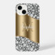 Glam Diamonds on Black, Gold Monogram, Script Name iPhone Case