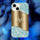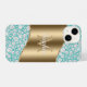 Glam Diamonds on Teal, Gold Monogram, Script Name iPhone Case