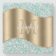 Personalise large gold monogram and name in white script on gold wave with white diamonds on teal.