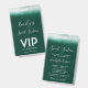 Your guests will love this chic VIP pass sweet 16 badge invitation. This modern design features a emerald green background, shimmer lights and calligraphy font.