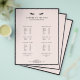 Black eyelashes along with your name or business name are set on a classic black-bordered pastel pink flyer with black text. Sophisticated and chic business card template for eyelash extensions, makeup artists, lash bars, cosmetic companies and more. Perfect for using for price lists, service menus, promotional pieces, etc. © 1201AM CREATIVE