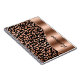 This design features a chic rose gold metallic leopard spot pattern on a black background on the left, and a rose gold faux foil image on the right in the shape of a wave bordered with rose gold faux glitter. Personalise it with your name or monogram in a stylish black handwritten brush font.