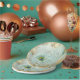 There is a complete set of products to coordinate making throwing your birthday party, business event or other special occasion easy and inexpensive! Personalised Wedding reception, bridal shower, couple's shower or other special event customised paper party plates and matching napkins using the simple template fields provided. This version has an ornate, baroque style edge border overlay made from a photographic image of real gold leaf. The rest of the image is hand painted, original artwork by Audrey Jeanne Roberts of beautiful Peacock feathers and faux gold leaf, golden vintage swirl scroll flourishes that highlight the lower corners. A subtle aqua blue background finishes off the design. Copyright, all rights reserved.