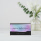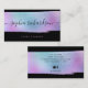 These elegant business cards feature a glam, faux holographic brush stroke on a dark black background. Your name appears in trendy handwritten script typography. There is also room to include your social media information on the back.