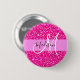 Glam and girly hot pink glitter sparkles white monogram name and initial button. Your custom name and monogram are written in an elegant hand lettered script with a pink background. You can change the text colour and font style and size using the customise option. A perfect birthday or Christmas gift!
