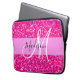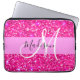 Glam Girly Hot Pink Glitter Sparkles Name Monogram Laptop Sleeve