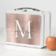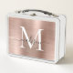 Glam Girly Rose Gold Brushed Metal Monogram Script Lunch Box