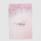 monogram initial and name script with personalised name on faux rose gold purple girly glitter background.