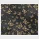 Glam black and gold butterflies in a seamless pattern. Modern luxury design with white sparkles.