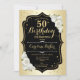 Elegant floral feminine 50th birthday invitation with your photo at the back of the card. Glam design with faux gold. Features white roses, script font and confetti. Perfect for a stylish adult bday celebration party. Personalise with your own details. Can be customised for any age! Printed Zazzle invitations or instant download digital printable template.