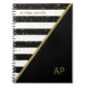 This elegant, modern notebook will bring an extra touch of style to your office or classroom! A diagonal, faux gold line separates trendy black and white stripes with faux gold confetti from a solid black colour. Personalise with your name and monogram.