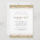 Glam Gold Glitter Borders Engagement Invitation. Elegant gold faux glitter borders are at the top and bottom on both sides. Engagement is set in an informal handwriting style and the rest of the text you can easily personalise.