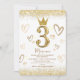 Glam Gold Glitter Crown 3rd Birthday Party Invitation