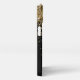Glam Gold Glitter Elegant Monogram iPhone Case. Easily personalise this trendy chic phone case design featuring elegant gold sparkling glitter on a black background. The design features your handwritten script monogram with pretty swirls and name.