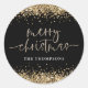 Glam Gold Glitter Name Merry Christmas Black Classic Round Sticker
