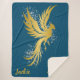 Wrap yourself in elegance with this large Sherpa blanket, adorned with a striking gold phoenix soaring against shimmering silver glitter. The personalised gold monogram adds a touch of sophistication and individuality, making this blanket not just a cosy essential but also a stylish statement piece. The soft Sherpa fabric ensures ultimate comfort while the sleek blue background provides a dramatic contrast, perfect for adding a touch of luxury and inspiration to your living space.