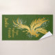Elevate your bathroom with this luxurious towel set, featuring a striking gold phoenix against a sparkling silver glitter background. Each towel is personalised with a gold monogram, adding a touch of sophistication and uniqueness to your daily routine. The sleek green backdrop enhances the dazzling design, while the plush, absorbent fabric ensures comfort and practicality. Perfect for infusing your bathroom with a blend of glamour and elegance, this towel set is a stylish and functional addition to your home.