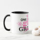 Fun design for glamourous grandmas featuring cute retro elements and pink, blue and black text that says ONE FABULOUS GRANDMA. The word GRAND is crossed out and replaced with GLAM. Perfect for a posh grandma or nana. PinkInkArt original!