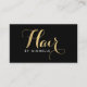 A glamourous, calligraphy font spells "Hair" in faux gold on this modern business card template. Add your name or business name for a personalised logo. Designed for hairstylists and salons. © 1201AM CREATIVE