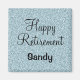 Personalised glam Happy Retirement magnet with a light blue silver glitter sparkles background and elegant black writing. You can easily add the name of your choice and change the colour and font of the name using the customise option!