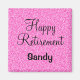 Personalised glam Happy Retirement magnet with a hot pink glitter sparkle background and elegant black writing. You can easily add the name of your choice and change the colour and font of the name using the customise option!