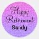 Personalised glam Happy Retirement classic round sticker with an ombre purple glitter sparkles background and elegant black writing. You can easily add the name of your choice and change the colour and font of the name using the customise option!