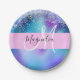 Glam Holographic Mermaid Glitter Sparkle Monogram Paper Plate