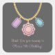 Sticker design features jewels in various shapes, cuts and colours of pink, purple and blue as pendants for the necklace. Perfect for the jewellery making girls birthday party as a decorative sticker for the jewellery packages the guests are bringing home. Personalise with your thank you message.