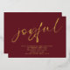 Glam Joyful Script Christmas Party Burgundy Real Foil for Joyful which is in a large modern playful set Calligraphy as is the typography with all the party details. The background colour on each side can be changed to another colour if preferred via the Edit further option. Easily personalise with your party details.