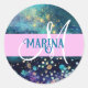 Glam Mermaid Aqua Gold Glitter Sparkles Monogram Classic Round Sticker