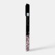 Modern glam style rose gold glitter and rose gold text on black monogram name script iphone 14 case. Personalise this by adding your name and Initial. The font and colour can also be changed using the customisation tool. Perfect for a girly girl wanting a phone case that is unique and stands out.