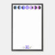 This beautiful, unique, glam boho design features phases of the lunar cycle at the top, including crescent, half and full moons, in pastel teal, blue, lavender purple and magenta pink with shadowed areas in grey black, arranged in an eye-catching row against a solid white background for writing on. The writing area is surrounded by a classy charcoal grey black brushed metal foil border. At the bottom are a a customisable lavender monogram and a personalised name in elegant, trendy dark grey script typography for a cool hand-lettered look. The design has been adapted to fit the medium-sized, rectangular 4" x 6" notepads. You can find the other available notepad sizes in the same collection. You can personalise this item by changing the monogram and name in the product template.