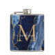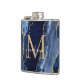 Glam Navy Blue Gold Glitter Agate Geode Monogram Hip Flask