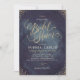 Glamour gold hand lettering calligraphy Bridal Shower design and gold dots confetti on dark navy blue sky night watercolor background, shimmer faux metallic gold glitter effect, modern, chic, elegant and classy, perfect for vintage wedding or winter wedding in evening. Customise your own wedding invitation card.