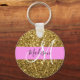 Glam Pink and Gold Glitter Sparkles Monogram Name Key Ring