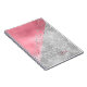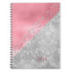 Glam custom spiral notebook, with graphics of a pink foil look over half the cover and a glittery silver done on the other half. Graphics of silver glitter runs down the middle of the notebook. Personalise the text for use at home, school or office.