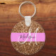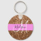 Glam Pink & Bronze Glitter Sparkles Monogram Name Key Ring