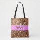 Glam Pink & Bronze Glitter Sparkles Monogram Name Tote Bag