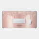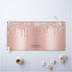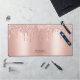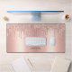 Easily personalise this Custom Glam Custom Name Desk Mat with Name, Profession, Website, Social media or any custom text. A girly and elegant design in cute rose gold faux foil and blush pink glitter drips fully customisable, sans-serif edgy and modern fonts and a professional, feminine, sassy and clear look. No minimum order.