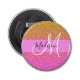 Girly and glam hot pink and orange, yellow, gold mermaid glitter sparkles gradient monogram name and initial bottle opener. Your custom name and monogram are written in an elegant hand lettered script with a pink background. A perfect birthday or Christmas gift!