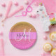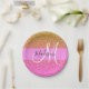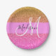 Glam Pink & Gold Glitter Sparkle Gradient Monogram Paper Plate
