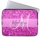 Glam Pink & Magenta Glitter Sparkle Monogram Name Laptop Sleeve
